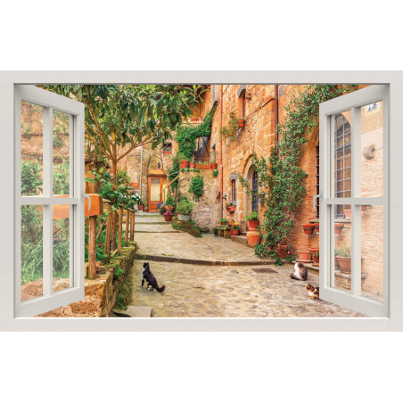 Tuinposter Raam steeg katten 140x90cm