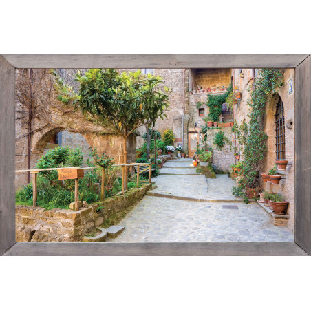 Tuinposter lijst hout steeg trap 140x90cm